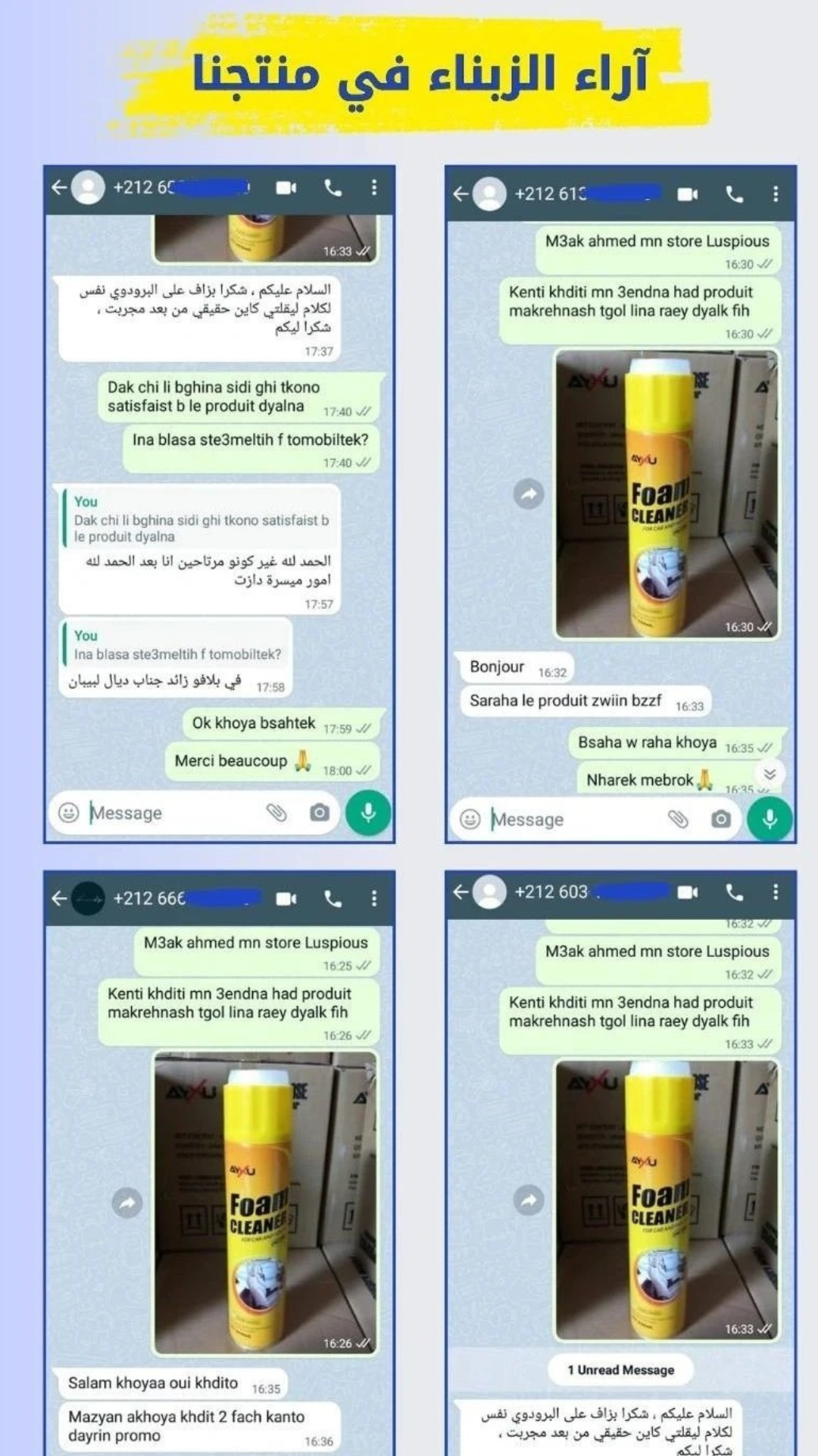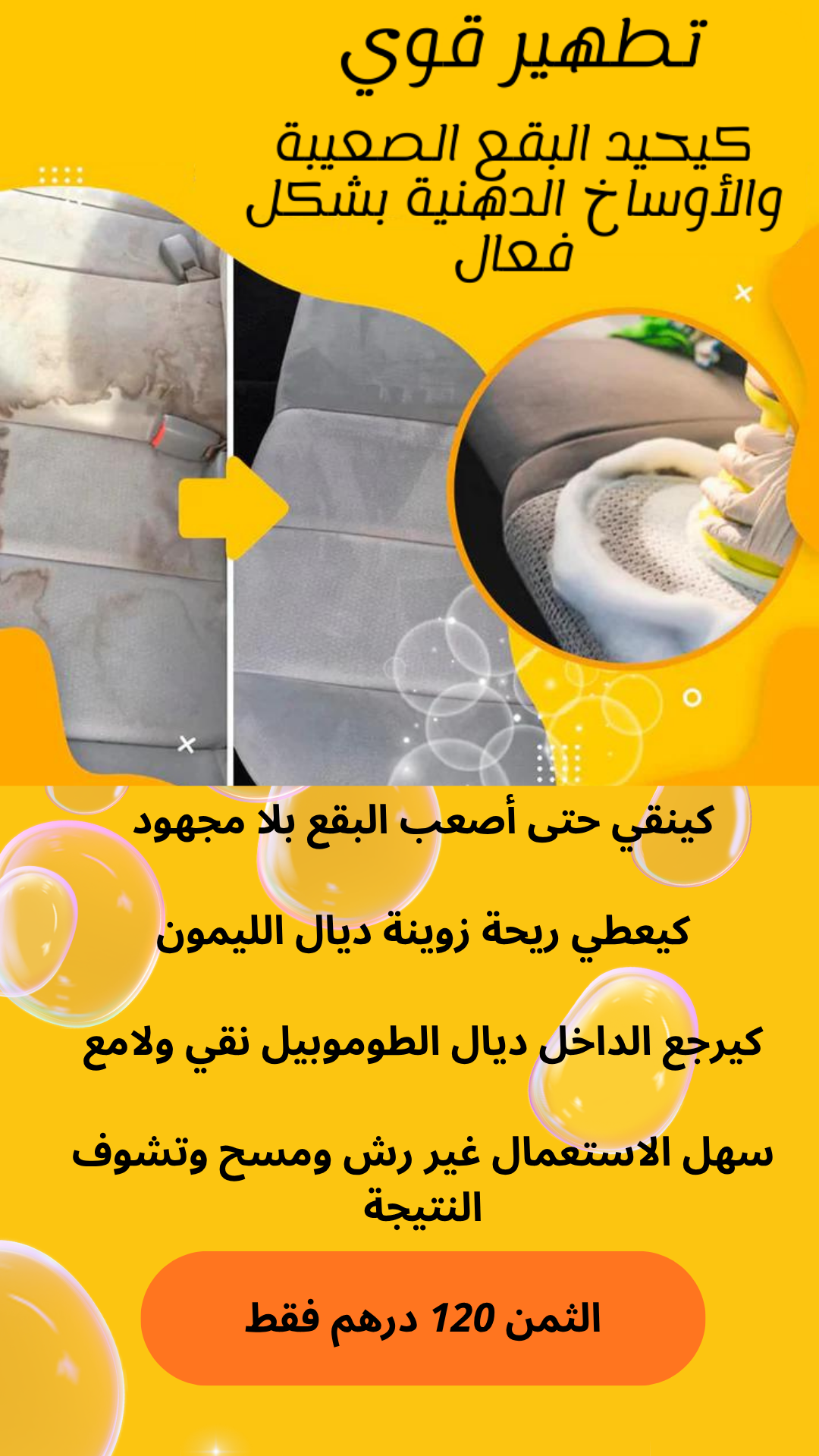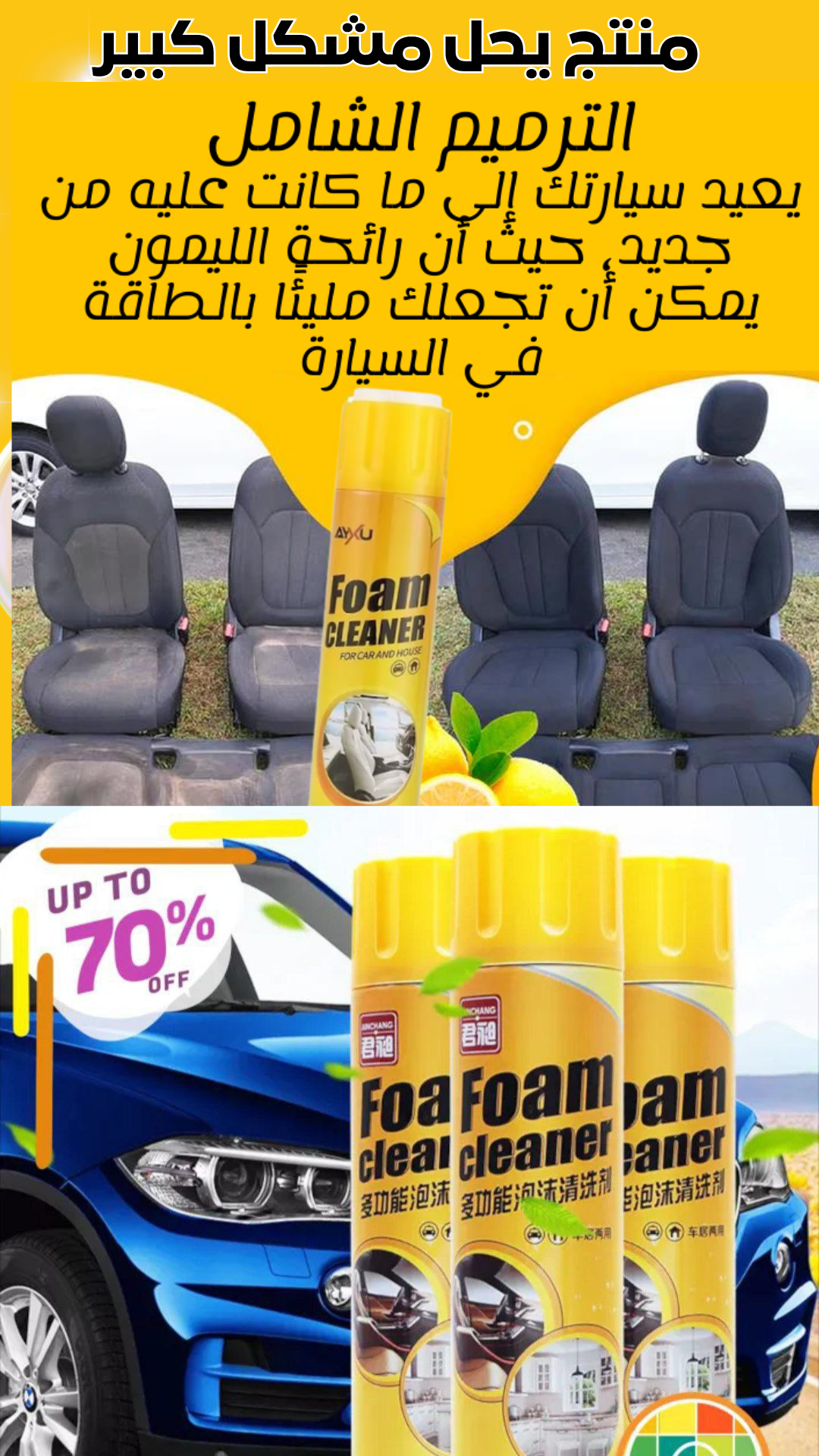 AYKU Foam Cleaner هو الحل المثالي باش تتخلص من الوسخ والبقع والغبرة لي كيتجمعو فالكراسي والسقف والأبواب