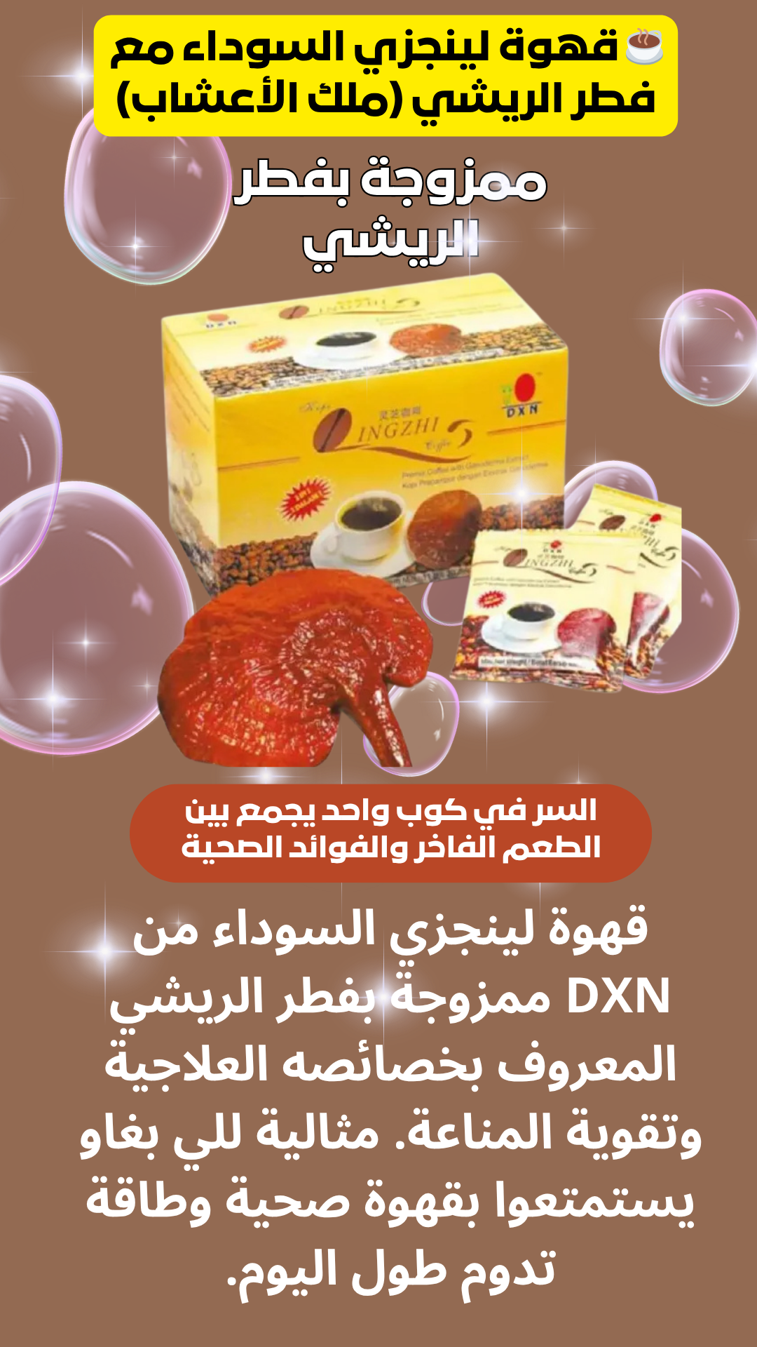 ☕ قهوة لينجزي السوداء مع فطر الريشي (ملك الأعشاب)